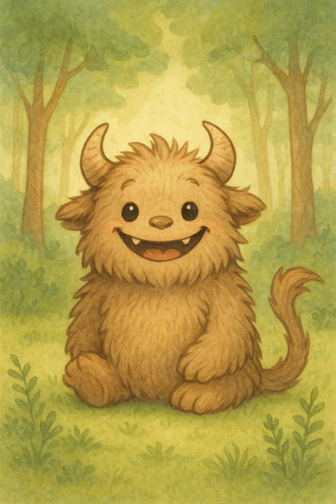 El pequeño monstruo se sintió tan emocionado, que cambió de idea. Empezó a hacer gestos graciosos con su cara. Y hasta intentó bailar.